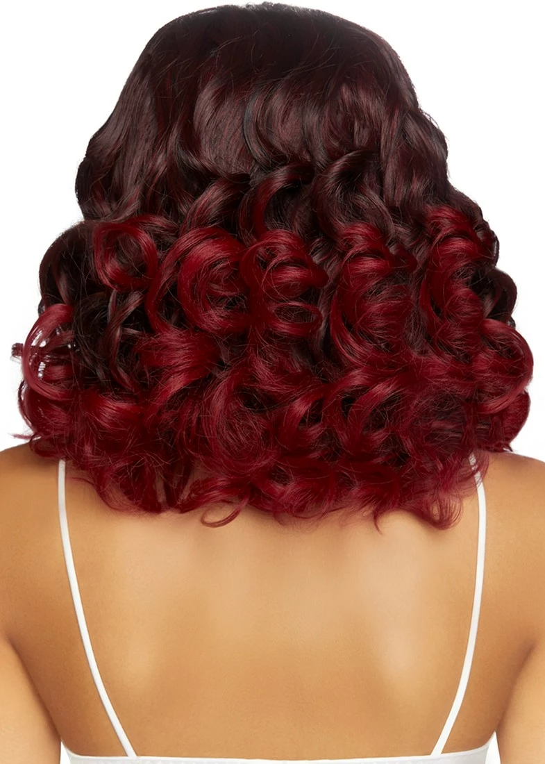 Kleur: de kleur van de pruik verloopt van rood/bruin naar burgundy rood