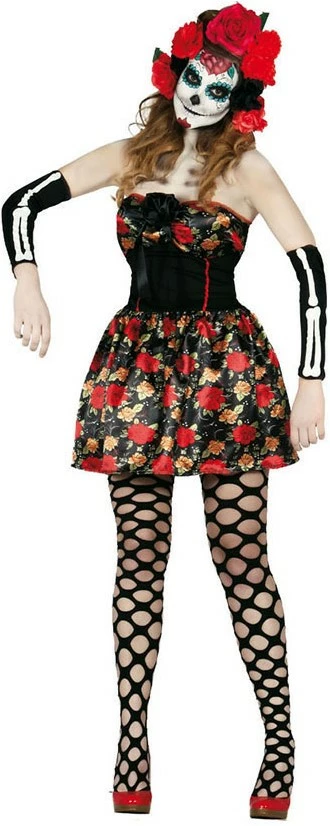 Dit gave kostuum is geinspireerd op de kleurrijke Day of the Dead stijl. Het prachtige kostuum bestaat uit de volgende delen:
