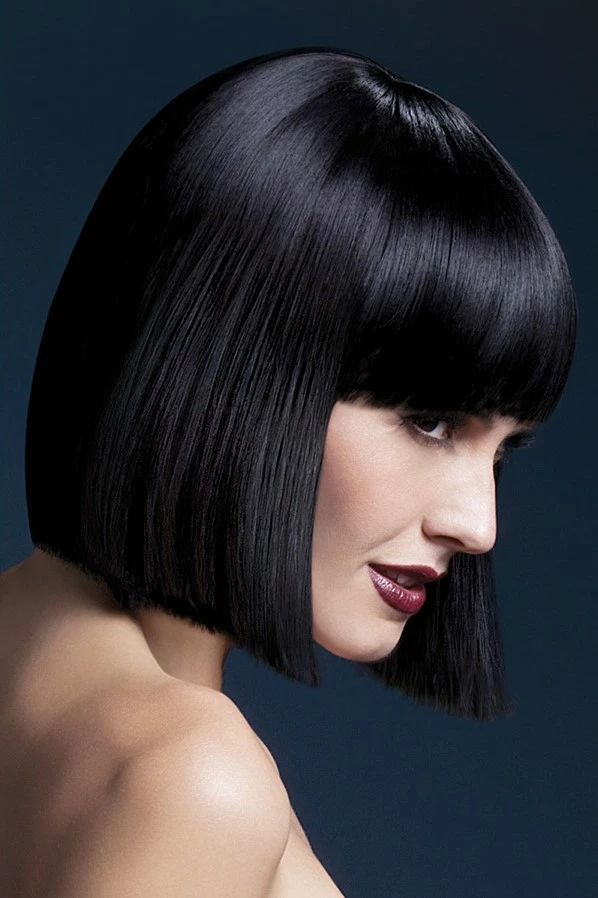 Een erg mooie zwarte bobline pruik van 30 centimeter. De pruik is in meerdere kleuren verkrijgbaar. Deze prachtige pruik maakt deel uit van de Fever Wig Collection. Dit is een collectie met kwalitatieve en realistische pruiken.