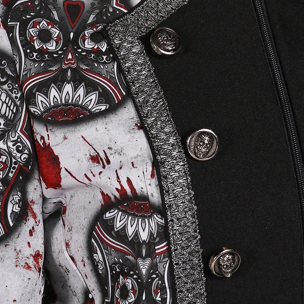 Mooie dames jas met een opdruk van Mexican Skulls – Day of the Dead. De jas is gemaakt van 100% polyester. De jas sluit aan de voorzijde doormiddel van een rits. Ook verkrijgbaar in een kleurrijke variant.