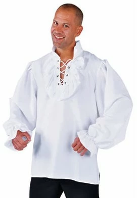 Details: ruim vallend hemd met op de borst een veter sluiting en ruches