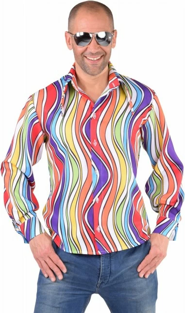 Kleurrijke disco blouse voor heren. Verkrijgbaar in meerdere prints.