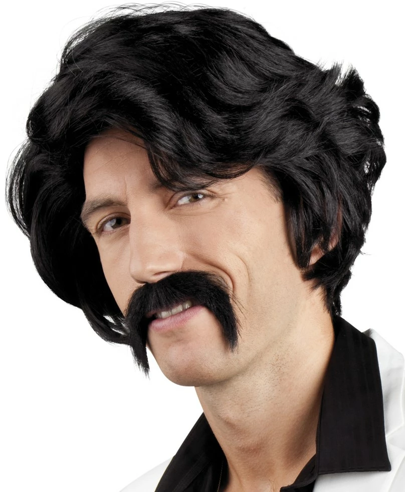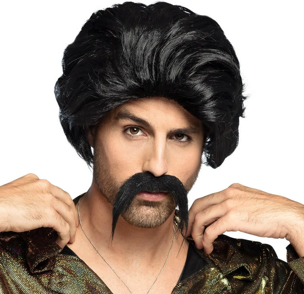 De pruik is voor veel verschillende thema’s te gebruiken, bijvoorbeeld een gangster.