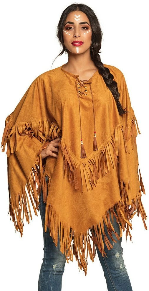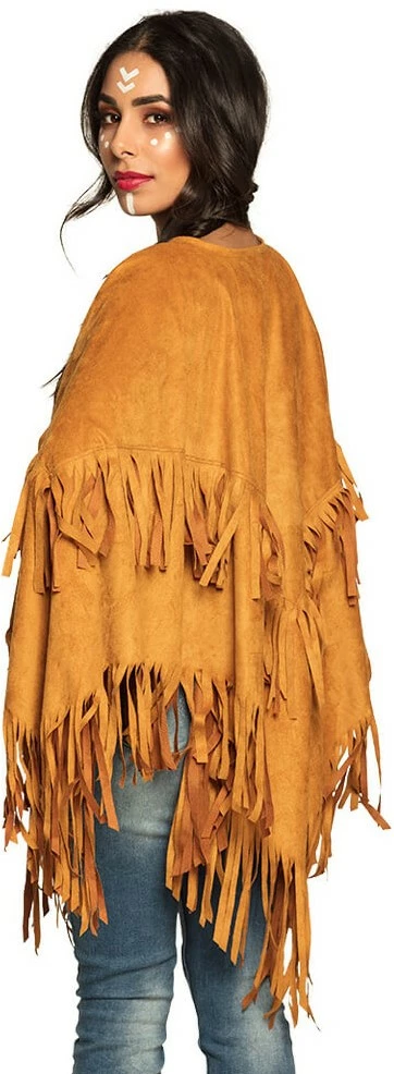 Details: veter sluiting bij de hals en rondom allemaal franjes