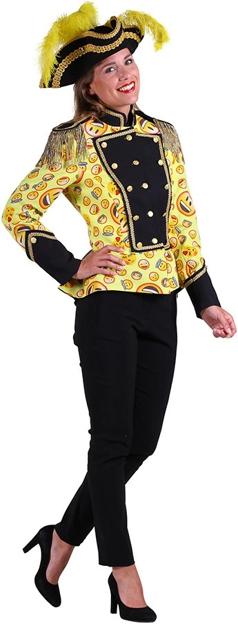 Een vrolijke korte carnavalsjas voor dames. Tover bij iedereen een lach op het gezicht met deze leuke smileys!