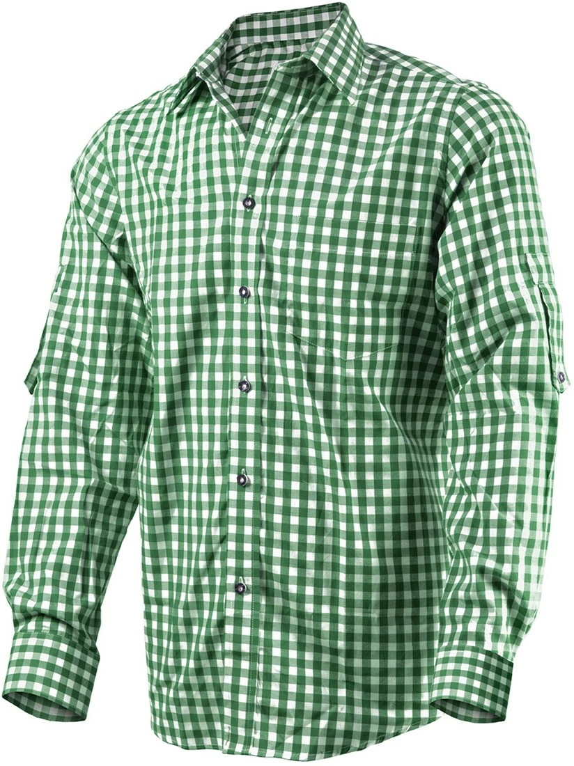 Een luxe tirolerhemd met een authentiek donkergroen/wit geblokt patroon. Er zitten speciale trachten-knopen op de blouse, waaronder op de mouwen. Hiermee kunnen de mouwen makkelijk worden opgeknoopt. Ook verkrijgbaar in veel andere kleuren.