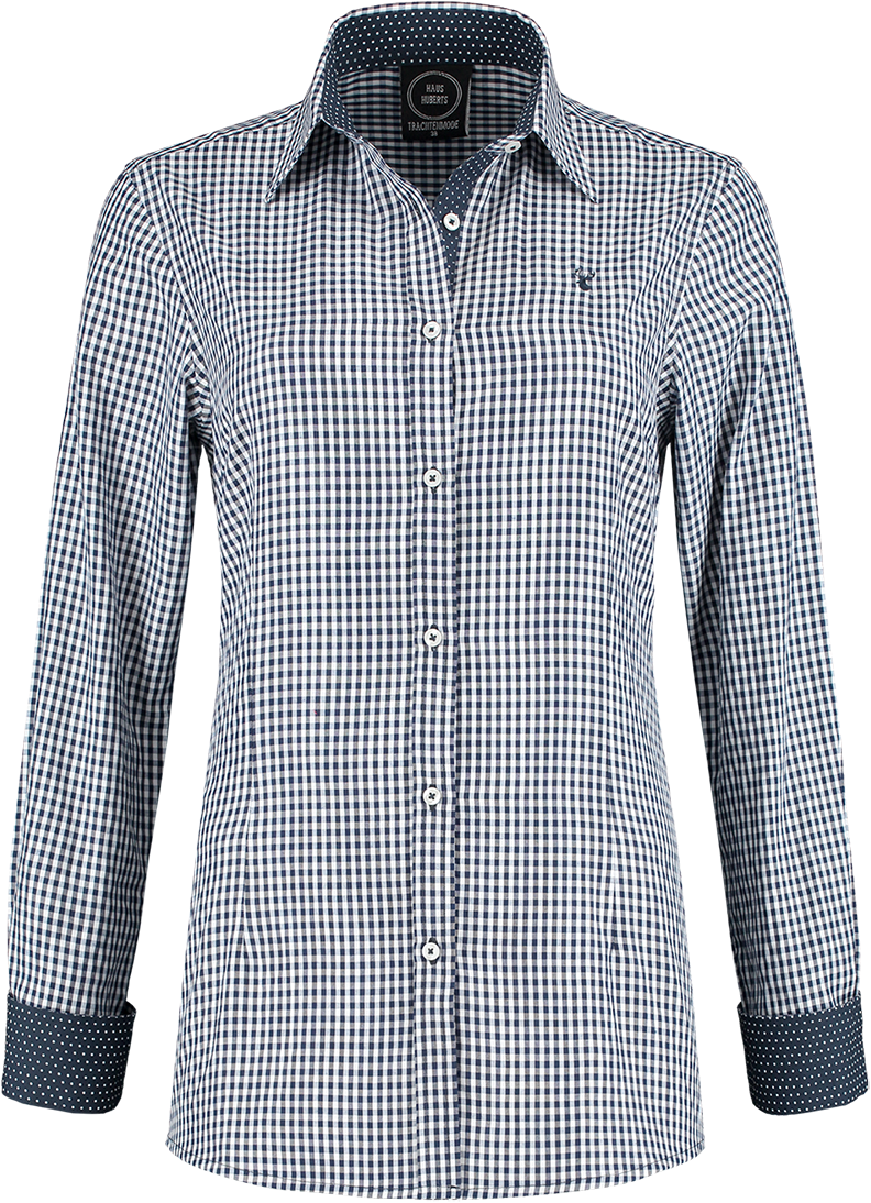 Een luxe trachtenblouse voor dames in het blauw/wit geblokt. De blouse is perfect om boven een mooie lederhose aan te trekken naar een Oktoberfest.